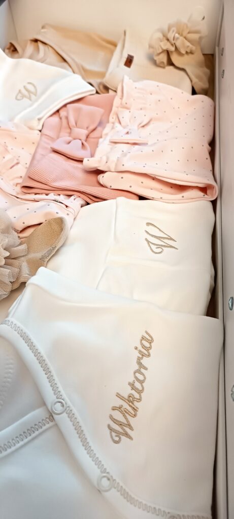 Personalizujemy nasze produkty haftując inicjały, imiona oraz unikatowe wzory. Wszystko na życzenie klienta.